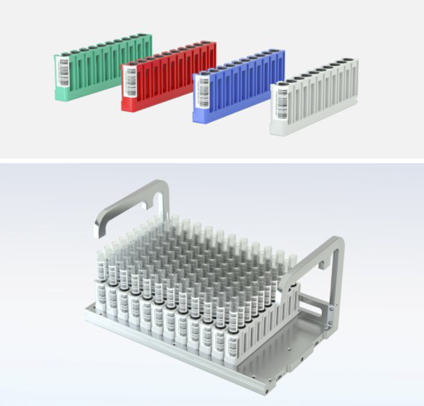 可随时放置样本架,支持2种规格(5架/10架)的样本提篮,每个样本架10个标本,最多可放置60个样本架,最高单次可放置样本数达600个。